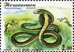 Visibility: public Image owner: none postage 4/30/2007 2.00s multi dt=fauna of Tajikistan d=Naja oxiana (2007) unwmk Crops No visible images cropped from this one. Measurements Resolution is unknown. Source Source name: Colnect File URL: http://i.colnect.net/b/1739/023/Central-Asian-Cobra-Naja-oxiana-.jpg Uploaded September 16, 2014, 8:33 pm by Stan Shebs |