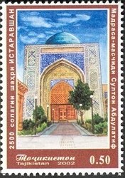 Visibility: public Image owner: none postage 9/6/2002 50d multi issue=Istravshan 2500th dt=Istravshan buildings unwmk Crops No visible images cropped from this one. Measurements Resolution is unknown. Source Source name: Colnect File URL: http://i.colnect.net/images/b/1735/188/Mosque-of-Mavlono-Usmoni-Charhi-Istravshan-city.jpg Uploaded September 16, 2014, 8:36 pm by Stan Shebs |