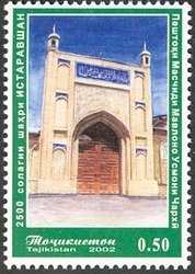 Visibility: public Image owner: none postage 9/6/2002 50d multi issue=Istravshan 2500th dt=Istravshan buildings unwmk Crops No visible images cropped from this one. Measurements Resolution is unknown. Source Source name: Colnect File URL: http://i.colnect.net/images/b/1735/192/Mosque-of-Abdulatif-Sulton-Kok-Gumbaz.jpg Uploaded September 16, 2014, 8:36 pm by Stan Shebs |