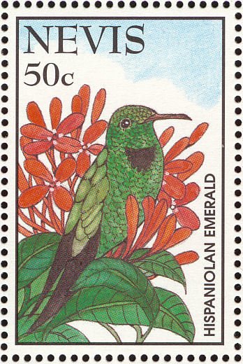 Visibility: public Image owner: none postage 3/30/1995 50c multi issue=Hummingbirds of the West Indies dt=hummingbirds (1995 Nevis) d=Chlorostilbon swainsonii wmk=crown & CA perf=14 Crops No visible images cropped from this one. Measurements Resolution is unknown. Source Source name: Colnect File URL: http://i.colnect.net/b/1646/415/Hispaniolan-Emerald-Chlorostilbon-swainsonii.jpg Uploaded September 16, 2014, 8:51 pm by Stan Shebs |