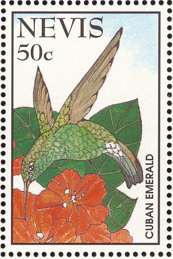 Visibility: public Image owner: none postage 3/30/1995 50c multi issue=Hummingbirds of the West Indies dt=hummingbirds (1995 Nevis) d=Chlorostilbon ricordii (1995) wmk=crown & CA perf=14 Crops No visible images cropped from this one. Measurements Resolution is unknown. Source Source name: Colnect File URL: http://i.colnect.net/b/1646/421/Cuban-Emerald-Chlorostilbon-ricordii.jpg Uploaded September 16, 2014, 8:51 pm by Stan Shebs |