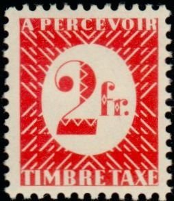 Visibility: public Image owner: none postage due 2fr issue=1945 d=numeral (1945 French Colonies) unwmk perf=12 Crops No visible images cropped from this one. Measurements Resolution is unknown. Source Source name: Colnect File URL: http://i.colnect.net/b/1160/696/Tax.jpg Uploaded September 16, 2014, 10:18 pm by Stan Shebs |