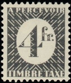 Visibility: public Image owner: none postage due 4fr issue=1945 d=numeral (1945 French Colonies) unwmk perf=12 Crops No visible images cropped from this one. Measurements Resolution is unknown. Source Source name: Colnect File URL: http://i.colnect.net/b/1160/697/Tax.jpg Uploaded September 16, 2014, 10:18 pm by Stan Shebs |