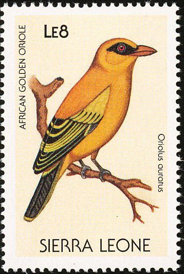 Visibility: public Image owner: none postage 6/25/1988 8le multi issue=Birds 1988 dt=birds (1988 Sierra Leone) d=Oriolus auratus (1988) unwmk perf=14 Crops No visible images cropped from this one. Measurements Resolution is unknown. Source Source name: Colnect File URL: http://i.colnect.net/images/b/1618/026/African-Golden-Oriole-Oriolus-auratus.jpg Uploaded September 16, 2014, 10:45 pm by Stan Shebs |