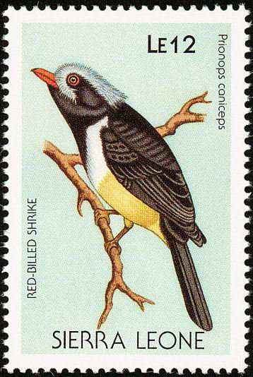 Visibility: public Image owner: none postage 6/25/1988 12le multi issue=Birds 1988 dt=birds (1988 Sierra Leone) d=Prionops caniceps unwmk perf=14 Crops No visible images cropped from this one. Measurements Resolution is unknown. Source Source name: Colnect File URL: http://i.colnect.net/images/b/1618/028/Red-billed-Helmet-shrike-Prionops-caniceps.jpg Uploaded September 16, 2014, 10:45 pm by Stan Shebs |