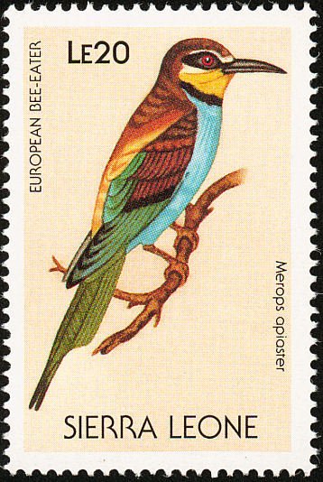 Visibility: public Image owner: none postage 6/25/1988 20le multi issue=Birds 1988 dt=birds (1988 Sierra Leone) d=European bee-eater Merops apiaster (1988) unwmk perf=14 Crops No visible images cropped from this one. Measurements Resolution is unknown. Source Source name: Colnect File URL: http://i.colnect.net/images/b/1618/029/European-Bee-eater-Merops-apiaster.jpg Uploaded September 16, 2014, 10:45 pm by Stan Shebs |