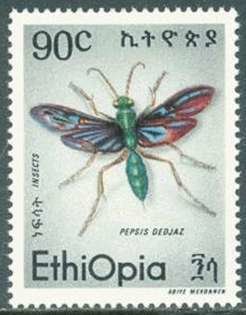 Visibility: public Image owner: none postage 9/30/1977 90c multi dt=insects (1977 Ethiopia) d=Pepsis dedjaz unwmk Crops No visible images cropped from this one. Measurements Resolution is unknown. Source Source name: Colnect File URL: http://i.colnect.net/b/1743/088/Spider-hunting-Wasp-Hemipepsis-dedjaz.jpg Uploaded September 16, 2014, 10:47 pm by Stan Shebs |