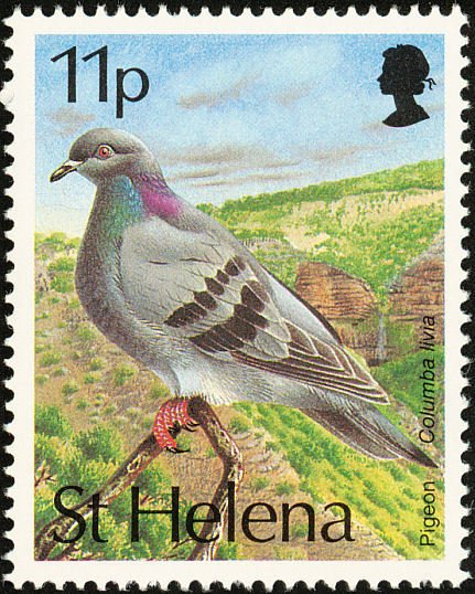 Visibility: public Image owner: none postage 8/26/1993 11p multi issue=1993 dt=birds (1993 St. Helena) d=Columba livia (1993) wmk=mult crown & script CA Crops No visible images cropped from this one. Measurements Resolution is unknown. Source Source name: Colnect File URL: http://i.colnect.net/b/1661/832/Rock-Dove-Columba-livia.jpg Uploaded September 16, 2014, 11:07 pm by Stan Shebs |