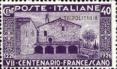 Visibility: public Image owner: none postage 4/12/1926 40c issue=St Francis of Assisi death 700th ovpt=TRIPOLITANIA oc=blk on=issuer=Italy-40c Crops No visible images cropped from this one. Measurements Resolution is unknown. Source Source name: Colnect File URL: http://i.colnect.net/b/1628/291/San-Francesco-overprinted.jpg Uploaded September 17, 2014, 12:21 am by Stan Shebs |