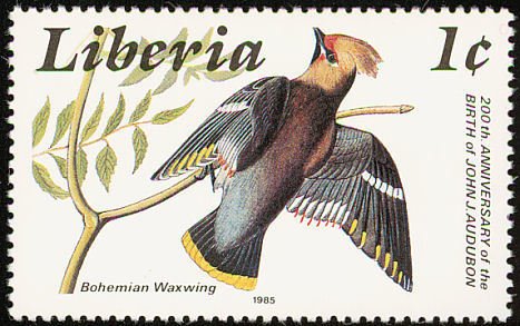 Visibility: public Image owner: none postage 4/5/1985 1c multi issue=200th Anniversary of the Birth of John James Audubon dt=birds (1985 Liberia) d=Bombycilla garrulus pallidiceps (Audubon) unwmk Crops No visible images cropped from this one. Measurements Resolution is unknown. Source Source name: Colnect File URL: http://i.colnect.net/b/1641/772/Bohemian-Waxwing-Bombycilla-garrulus-ssp-pallidiceps-.jpg Uploaded September 17, 2014, 1:29 pm by Stan Shebs |