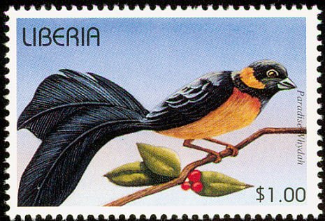 Visibility: public Image owner: none postage 8/19/1996 $1.00 multi issue=birds 1996 dt=birds (1996 Liberia) unwmk perf=14 Crops No visible images cropped from this one. Measurements Resolution is unknown. Source Source name: Colnect File URL: http://i.colnect.net/b/1641/798/Sahel-Paradise-whydah-Vidua-orientalis.jpg Uploaded September 17, 2014, 1:52 pm by Stan Shebs |