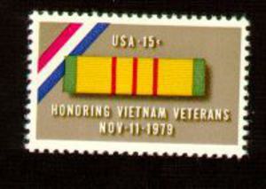 Visibility: public Image owner: none postage 11/11/1979 15c multi issue=Viet Nam Veterans d=Ribbon for Vietnam Service Medal unwmk perf=11 Crops No visible images cropped from this one. Measurements Resolution is unknown. Source Source name: Colnect (old) File URL: http://i.colnect.net/images/f/198/787/Vietnam-Vets.jpg Uploaded August 11, 2012, 2:26 pm by Stan Shebs |
