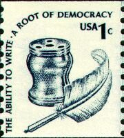 Visibility: public Image owner: none postage 11/25/1975 1c dkbl issue=Americana coils d=inkwell & quill unwmk perf=10v Crops No visible images cropped from this one. Measurements Resolution is unknown. Source Source name: Colnect File URL: http://i.colnect.net/images/b/198/798/Inkwell-and-Quill.jpg Uploaded August 11, 2012, 2:37 pm by Stan Shebs |
