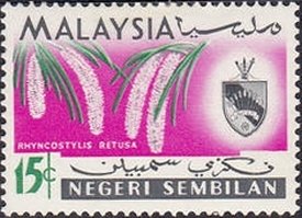 Visibility: public Image owner: none Current identification: Malaysia/Negri Sembilan postage 11/15/1965 15c cer&blk&multi dt=orchids (1965 Malaysia) d=Rhynchostylis retusa & arms of Negri Sembilan wmk=PTM multiple Crops No visible images cropped from this one. Measurements Resolution is unknown. Source Source name: Colnect File URL: http://i.colnect.net/b/1490/674/Rhynchostylis-retusa.jpg Uploaded September 17, 2014, 1:59 pm by Stan Shebs |