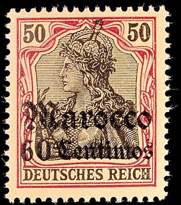 Visibility: public Image owner: none postage 10/1/1905 60c pur&blk pc=sal issue=1905 d=Germania (Deutsches Reich) ovpt=Marocco fraktur//value oc=blk on=issuer=Germany-1902-50pf unwmk perf=14x14.25 Crops No visible images cropped from this one. Measurements Resolution is unknown. Source Source name: Colnect File URL: http://i.colnect.net/b/1694/994/Germania-with-overprint.jpg Uploaded September 17, 2014, 2:45 pm by Stan Shebs |