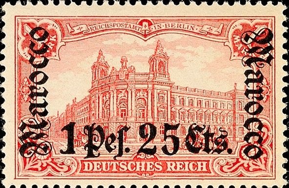 Visibility: public Image owner: none postage 10/1/1905 1p25c carrose issue=1905 d=post office (1902) ovpt=Marocco fraktur//value oc=blk on=issuer=Germany-1902-1m unwmk Crops No visible images cropped from this one. Measurements Resolution is unknown. Source Source name: Colnect File URL: http://i.colnect.net/b/1694/997/overprint-on--Germania-.jpg Uploaded September 17, 2014, 2:45 pm by Stan Shebs |