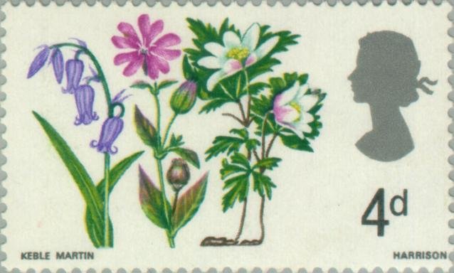Visibility: public Image owner: none postage 4/24/1967 4d multi dt=flowers (1967 Great Britain) d=Bluebell Red Campion & Wood Anemone wmk=St Edwards crown mult Crops No visible images cropped from this one. Measurements Resolution is unknown. Source Source name: Colnect File URL: http://i.colnect.net/b/121/699/Bluebell-Red-Campion-and-Wood-Anemone.jpg Uploaded August 12, 2012, 1:08 am by Stan Shebs |