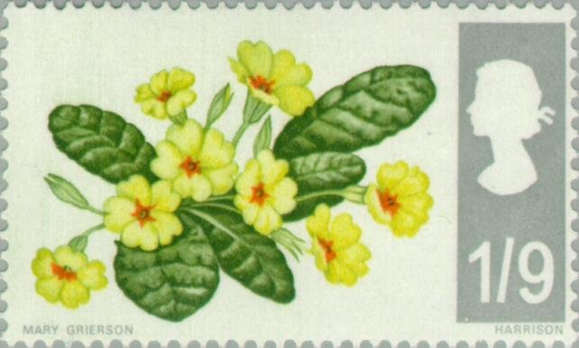 Visibility: public Image owner: none postage 4/24/1967 1sh9p multi dt=flowers (1967 Great Britain) d=primrose Primula vulgaris wmk=St Edwards crown mult Crops No visible images cropped from this one. Measurements Resolution is unknown. Source Source name: Colnect File URL: http://i.colnect.net/b/121/701/Primroses-phosphor.jpg Uploaded August 12, 2012, 1:08 am by Stan Shebs |