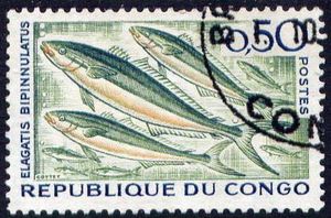 Visibility: public Image owner: none postage 11/28/1961 50c dt=fishes (1961 Republic of the Congo) d=rainbow runner unwmk Crops No visible images cropped from this one. Measurements Resolution is unknown. Source Source name: Colnect (old) File URL: http://i.colnect.net/images/f/527/667/Sea-life-Fish-Poisson-Y-amp-T.jpg Page URL: http://colnect.com/en/stamps/stamp/154764-Sea_life_Fish_Poisson_YT-Sea_Life-DPR_Congo Gallery URL: http://colnect.com/en/stamps/list/year/1961/country/4253-DPR_Congo Uploaded August 12, 2012, 3:28 pm by Stan Shebs |