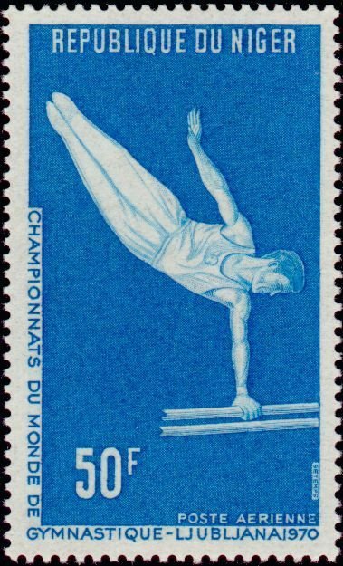 Visibility: public Image owner: none airmail 10/26/1970 50fr ultra issue=World Gymnastics Championships 1970 d=Parallel bars unwmk perf=13 Crops No visible images cropped from this one. Measurements Resolution is unknown. Source Source name: Colnect File URL: http://i.colnect.net/images/b/998/042/Parallel-Bars.jpg Uploaded August 15, 2014, 5:48 pm by Stan Shebs |