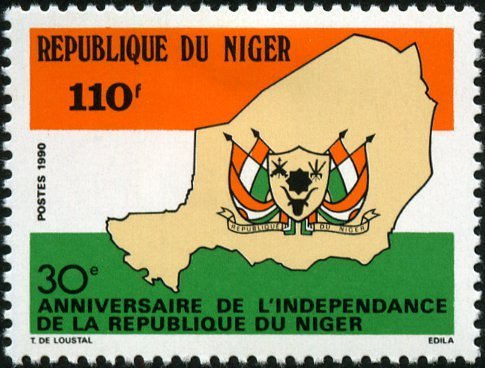 Visibility: public Image owner: none postage 8/3/1990 110fr multi issue=independence 30th d=arms of Niger on map of Niger unwmk perf=12.5 Crops No visible images cropped from this one. Measurements Resolution is unknown. Source Source name: Colnect File URL: http://i.colnect.net/images/b/1011/132/30th-Anniversary-of-Independence.jpg Uploaded August 15, 2014, 5:48 pm by Stan Shebs |