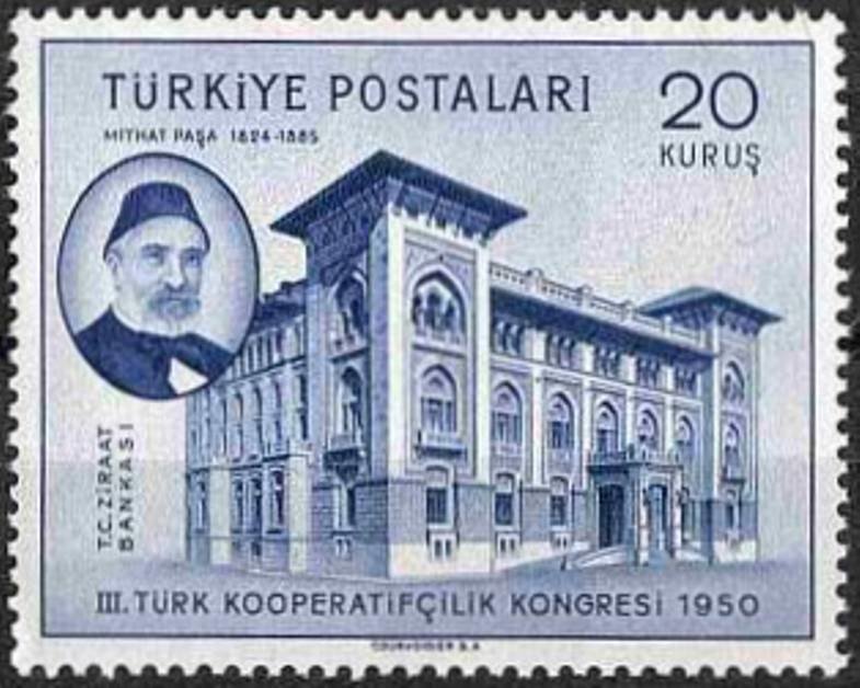 Visibility: public Image owner: none postage 12/21/1950 20k bl issue=3rd Congress of Turkish Cooperatives d=Agricultural Bank unwmk perf=11.5 Crops No visible images cropped from this one. Measurements Resolution is unknown. Source Source name: Colnect File URL: http://i.colnect.net/b/723/226/Mithat-Pasha-and-Security-Bank-Building.jpg Uploaded August 15, 2014, 5:49 pm by Stan Shebs |