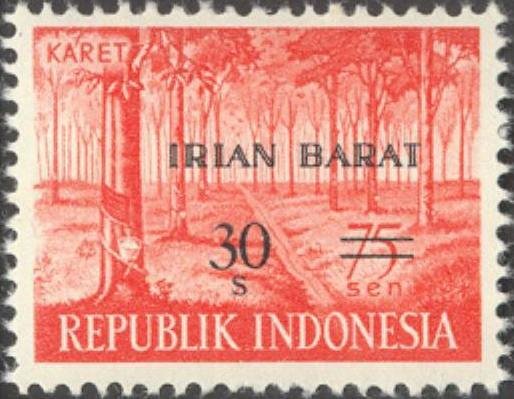 Visibility: public Image owner: none West Irian postage 5/1/1963 30s issue=provisional ovpt=Irian Barat oc=blk on=issuer=Indonesia-75s Crops No visible images cropped from this one. Measurements Resolution is unknown. Source Source name: Colnect File URL: http://i.colnect.net/b/1162/674/Indonesia-stamps-overprinted-`Irian-Barat`.jpg Uploaded August 15, 2014, 8:34 pm by Stan Shebs |