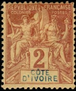 Type: stamp Issuer: Ivory Coast Date: 1892 Denom: ?