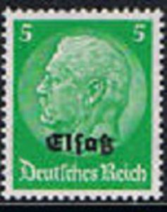 Visibility: public Image owner: none postage 5pf issue=1940 ovpt=Elsasz oc=blk on=issuer=Germany-issue=1933-5pf Crops No visible images cropped from this one. Measurements Resolution is unknown. Source Source name: Colnect (old) File URL: http://i.colnect.net/images/f/547/964/Overprint-ELSASS-Over-Hindenburg.jpg Gallery URL: http://colnect.com/en/stamps/list/page/1/country/10954-German_occupations_in_the_years_1939-1945/series/51848-Elsass Uploaded August 26, 2012, 6:03 am by Stan Shebs |