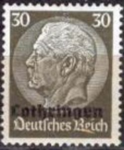 Visibility: public Image owner: none postage 30(pf) dkolgrn issue=1940 d=Hindenburg (profile) ovpt=Lothringen oc=blk on=issuer=Germany-issue=1933-30(pf) wmk=network perf=14 Crops No visible images cropped from this one. Measurements Resolution is unknown. Source Source name: Colnect (old) File URL: http://i.colnect.net/images/f/547/213/Overprint-LOTHRINGEN-Over-Hindenburg.jpg Uploaded August 26, 2012, 6:06 am by Stan Shebs |