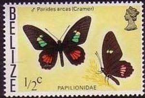 Visibility: public Image owner: none postage 9/2/1974 1/2c multi issue=1974 dt=butterflies of Belize (1974) d=Parides arcas wmk=St Edwards crown & CA perf=14 Crops No visible images cropped from this one. Measurements Resolution is unknown. Source Source name: Colnect (old) File URL: http://i.colnect.net/images/f/455/109/Butterflies.jpg Uploaded August 26, 2012, 7:15 am by Stan Shebs |