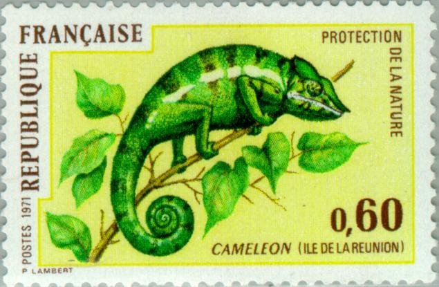 Visibility: public Image owner: none postage 11/6/1971 60c multi d=Reunion chameleon unwmk perf=13 Crops No visible images cropped from this one. Measurements Resolution is unknown. Source Source name: Colnect File URL: http://i.colnect.net/images/b/144/780/Panther-Chameleon-Chamaeleo-pardalis.jpg Uploaded August 16, 2014, 4:13 am by Stan Shebs |