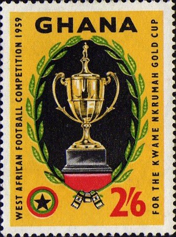 Visibility: public Image owner: none postage 10/15/1959 2sh6p multi issue=West African Soccer Championship d=Kwame Nkrumah Gold Cup wmk=star & G mult Crops No visible images cropped from this one. Measurements Resolution is unknown. Source Source name: Colnect File URL: http://i.colnect.net/b/463/810/Kwame-Nkrumah-Gold-Cup.jpg Uploaded August 16, 2014, 12:49 pm by Stan Shebs |