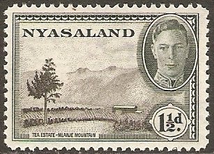 Visibility: public Image owner: none postage 9/1/1945 1 1/2p graygrn&blk issue=George VI pictorials d=tea estate Mlanje Mountain & King George VI wmk=mult crown & script CA Crops No visible images cropped from this one. Measurements Resolution is unknown. Source Source name: Colnect File URL: http://i.colnect.net/b/1727/121/Tea-Estate.jpg Uploaded September 17, 2014, 4:06 pm by Stan Shebs |