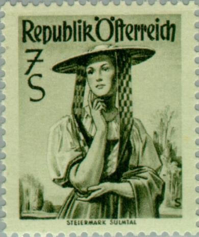Visibility: public Image owner: none postage 11/15/1952 brnzgrn issue=1948 dt=costumes (1948) d=woman of Steiermark, Sulmtal unwmk Crops No visible images cropped from this one. Measurements Resolution is unknown. Source Source name: Colnect File URL: http://i.colnect.net/images/b/136/288/Styria-Sulmtal.jpg Uploaded August 16, 2014, 2:11 pm by Stan Shebs |