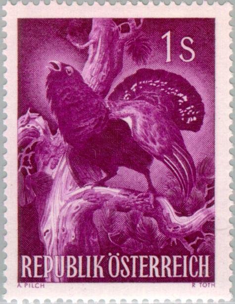Visibility: public Image owner: none postage 5/20/1959 1s rosevio dt=animals (1959 Austria) d=capercaillie (1959) unwmk Crops No visible images cropped from this one. Measurements Resolution is unknown. Source Source name: Colnect File URL: http://i.colnect.net/b/136/437/Western-Capercaillie-Tetrao-urogallus.jpg Uploaded August 16, 2014, 2:12 pm by Stan Shebs |