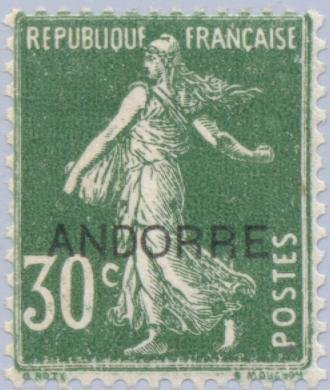 Visibility: public Image owner: none postage 6/16/1931 30c grn issue=1931 d=sower (1906 no ground) ovpt=ANDORRE oc=blk on=issuer=France-30c-grn-sower (1906 no ground)-unissued Crops No visible images cropped from this one. Measurements Resolution is unknown. Source Source name: Colnect File URL: http://i.colnect.net/b/141/625/Overprint.jpg Uploaded August 16, 2014, 3:13 pm by Stan Shebs |