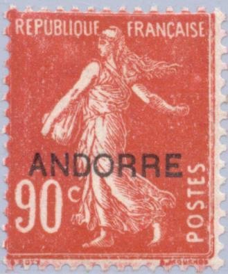 Visibility: public Image owner: none postage 6/16/1931 90c red issue=1931 d=sower (1906 no ground) ovpt=ANDORRE oc=blk on=issuer=France-90c-red-sower (1906 no ground)-unissued Crops No visible images cropped from this one. Measurements Resolution is unknown. Source Source name: Colnect File URL: http://i.colnect.net/b/141/631/Overprint.jpg Uploaded August 16, 2014, 3:13 pm by Stan Shebs |
