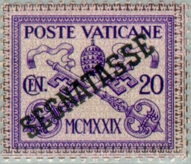 Visibility: public Image owner: none postage due 20c vio&lil issue=1931 due d=papal arms (1929) ovpt=SEGNATASSE oc=blk on=8/1/1929-20c unwmk perf=14 Crops No visible images cropped from this one. Measurements Resolution is unknown. Source Source name: Colnect File URL: http://i.colnect.net/b/152/050/Papal-coat-of-arms.jpg Uploaded August 16, 2014, 5:38 pm by Stan Shebs |