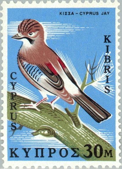 Visibility: public Image owner: none postage 7/7/1969 30m multi dt=birds (1969 Cyprus) d=Cyprus Jay wmk=mult crown & script CA Crops No visible images cropped from this one. Measurements Resolution is unknown. Source Source name: Colnect File URL: http://i.colnect.net/b/171/839/Cyprus-Jay-Garrulus-glandarius-glaszneri.jpg Uploaded August 16, 2014, 5:48 pm by Stan Shebs |