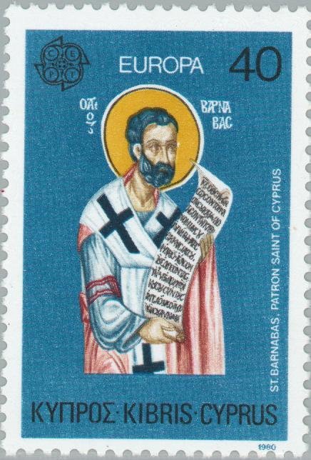 Visibility: public Image owner: none postage 4/28/1980 40m multi issue=Europa 1980 d=St Barnabas wmk=mult crown & script CA Crops No visible images cropped from this one. Measurements Resolution is unknown. Source Source name: Colnect File URL: http://i.colnect.net/b/174/643/EUROPA-CEPT-1980---Notable-Cypriots---StBarnabas.jpg Uploaded August 16, 2014, 6:14 pm by Stan Shebs |