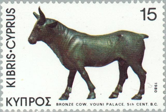Visibility: public Image owner: none postage 9/15/1980 15m issue=1980 d=Bronze Cow Vouni Palace 5th cent BC wmk=mult crown & script CA Crops No visible images cropped from this one. Measurements Resolution is unknown. Source Source name: Colnect File URL: http://i.colnect.net/images/b/174/651/Bronze-Cow-Vouni-Palace-5th-cent-BC.jpg Uploaded August 16, 2014, 6:14 pm by Stan Shebs |