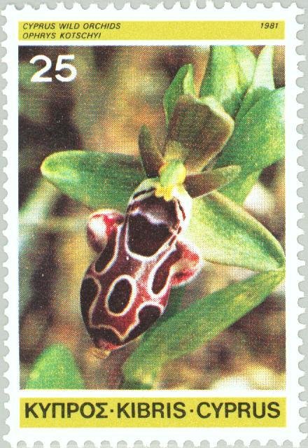 Visibility: public Image owner: none postage 7/6/1981 25m multi dt=orchids (1981 Cyprus) d=Ophrys kotschyi wmk=mult crown & script CA Crops No visible images cropped from this one. Measurements Resolution is unknown. Source Source name: Colnect File URL: http://i.colnect.net/b/174/991/Ophrys-kotschyi---Cyprus-Bee-Orchid.jpg Uploaded August 16, 2014, 6:20 pm by Stan Shebs |