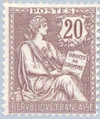 Visibility: public Image owner: none postage 20c brnvio d=rights of man (shield) unwmk perf=14x13.5 Crops No visible images cropped from this one. Measurements Resolution is unknown. Source Source name: Colnect File URL: http://i.colnect.net/b/142/838/Type-Mouchon.jpg Uploaded August 16, 2014, 7:04 pm by Stan Shebs |
