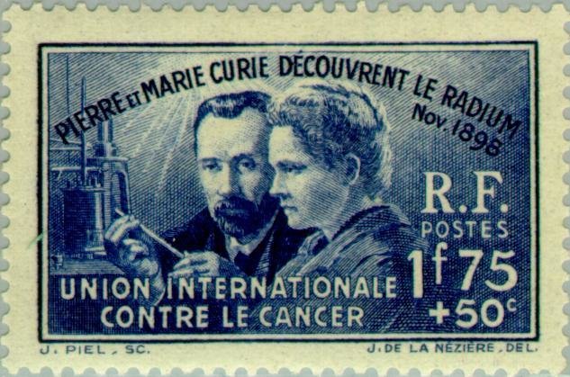 Visibility: public Image owner: none semipostal 9/1/1938 1.75fr+50c bl issue=40th Anniversary of the Discovery of Radium d=Pierre Curie and Marie Curie unwmk perf=13 Crops No visible images cropped from this one. Measurements Resolution is unknown. Source Source name: Colnect File URL: http://i.colnect.net/images/b/143/195/Pierre-and-Marie-Curie-discovered-radium-International-Unio.jpg Uploaded August 16, 2014, 8:09 pm by Stan Shebs |