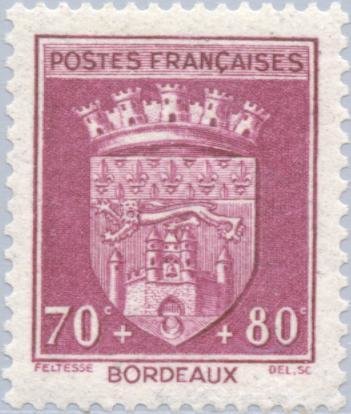 Visibility: public Image owner: none semipostal 12/15/1941 70+80c issue=1941 arms d=arms of Bordeaux unwmk perf=14x13 Crops No visible images cropped from this one. Measurements Resolution is unknown. Source Source name: Colnect File URL: http://i.colnect.net/b/143/341/Bordeaux.jpg Uploaded August 16, 2014, 8:13 pm by Stan Shebs |