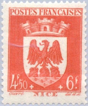 Visibility: public Image owner: none semipostal 10/3/1942 4.50+6fr orgred issue=1942 arms d=arms of Nice unwmk perf=14x13 Crops No visible images cropped from this one. Measurements Resolution is unknown. Source Source name: Colnect File URL: http://i.colnect.net/b/143/376/Nice.jpg Uploaded August 16, 2014, 8:19 pm by Stan Shebs |