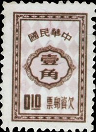 Visibility: public Image owner: none postage due 10/1/1966 $0.10 multi issue=1966 due wmk=seal char Crops No visible images cropped from this one. Measurements Resolution is unknown. Source Source name: Colnect File URL: http://i.colnect.net/b/1776/128/Postage-Due.jpg Uploaded September 17, 2014, 4:24 pm by Stan Shebs |