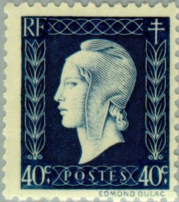 Visibility: public Image owner: none postage 12/1944 40c ind issue=1944b d=Marianne (de Dulac) unwmk Crops No visible images cropped from this one. Measurements Resolution is unknown. Source Source name: Colnect File URL: http://i.colnect.net/images/b/143/557/Marianne-type-Dulac.jpg Uploaded August 16, 2014, 8:29 pm by Stan Shebs |