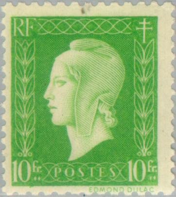 Visibility: public Image owner: none postage 12/1944 10fr issue=1944b d=Marianne (de Dulac) unwmk Crops No visible images cropped from this one. Measurements Resolution is unknown. Source Source name: Colnect File URL: http://i.colnect.net/images/b/143/571/Marianne-type-Dulac.jpg Uploaded August 16, 2014, 8:30 pm by Stan Shebs |
